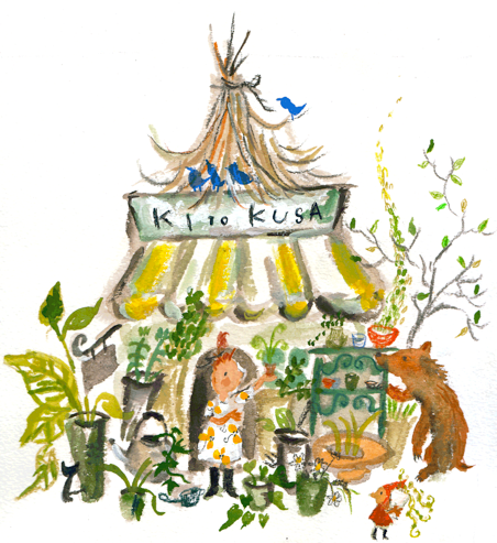 エルバさんの おみせは、きと くさと はなで いっぱい。